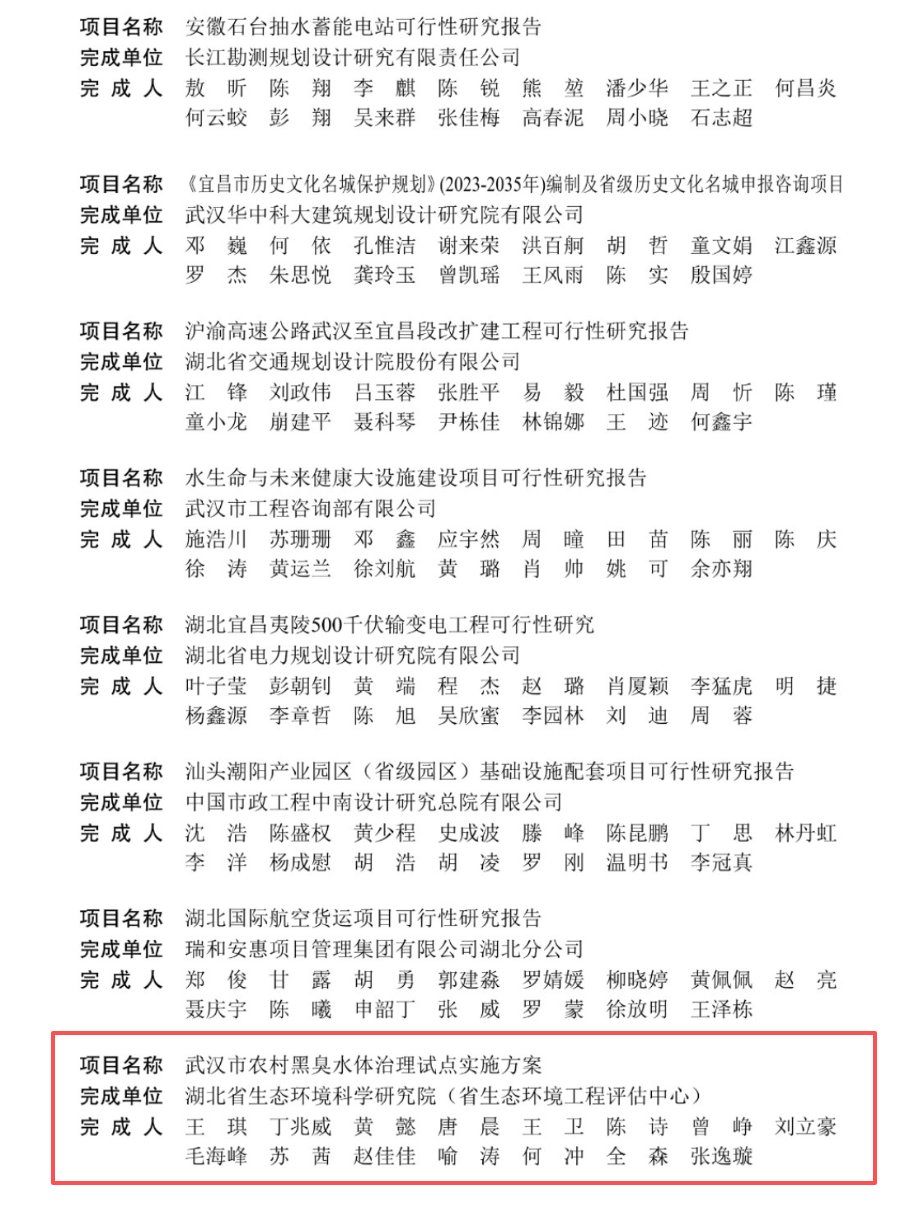 近日,我院独立完成的《武汉市农村黑臭水体治理试点实施方案》在2025年度湖北省工程咨询成果评价中被评为一等成果!