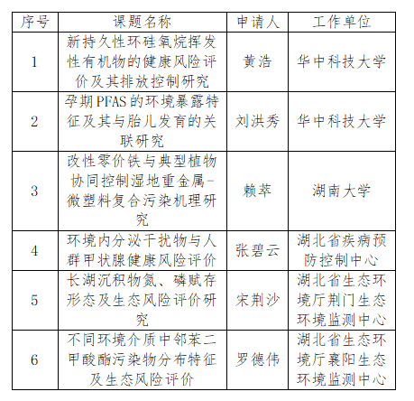 污染损害评估与环境健康风险防控湖北省重点实验拟立项课题名单