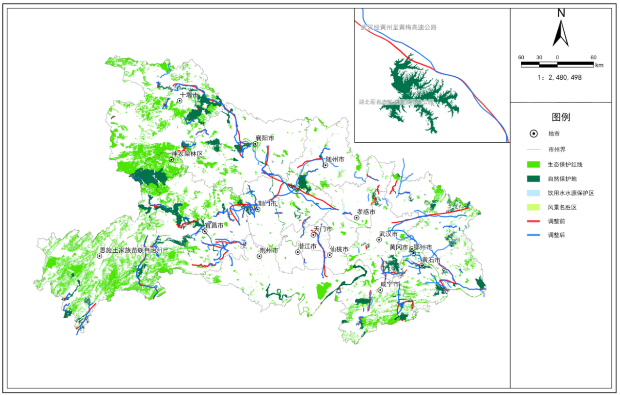 一是助力维护生态安全格局。通过生态环境分区管控成果运用,对全省30余个交通、港口、流域开发类规划布局进行优化调整,约90余个规划项目局部避让了生态保护红线、自然保护区、自然公园、饮用水水源保护区等生态敏感区,减少对生态系统的影响,助力守牢生态安全底线,保持生态空间稳定,维护湖北“四屏一山、三江一平原”自然生态格局。